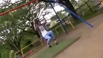 Japanese girl in pantyhose and a thong farts in a guys face with hand job